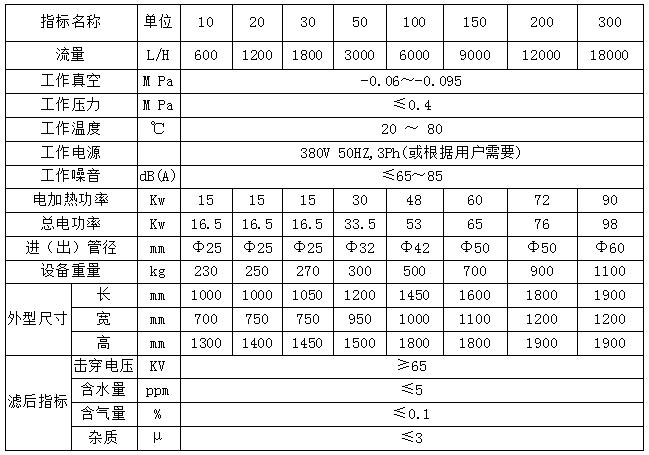 絕緣油多功能真空凈油機參數(shù):