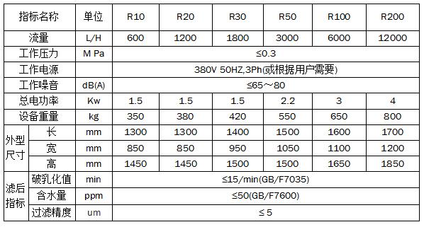 R系列聚結(jié)分離式凈油機參數(shù):