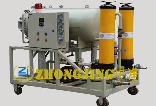 設(shè)備采用先進的聚結(jié)分離材料作為介質(zhì),集破乳化和精密過濾為一體。結(jié)合特制的油水分離裝置,能有效分離油中水分,脫水效率極高??蓪\行中的汽輪機組進行透平油的在線破乳化,脫水,除雜處理,同時也可以對含水量高的輕質(zhì)油進行脫水,除雜處理。本機運行時無須加熱和抽真空,耗能低,運行成本低。采用手推車結(jié)構(gòu),輕巧靈活,使用方便。