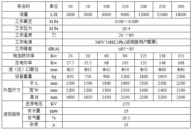 Z系列變壓器油高效真空濾油機技術參數(shù):