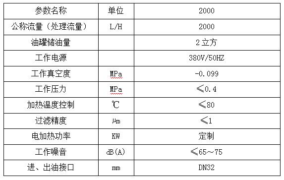 X系列儲油箱式在線過濾凈化系統(tǒng)參數(shù):